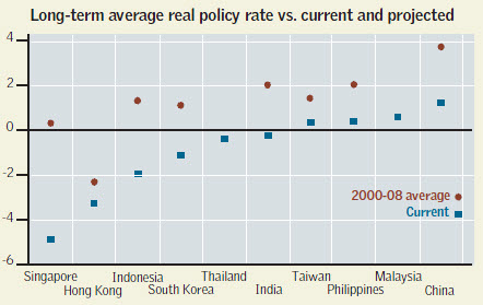 India, Malaysia and Thailand began to raise interest rates from the middle of last year. China raised the base rate last October and has raised rates three times since, most recently a 25 basis-point hike on April 6, while also hiking the reserve requirement ratio for banks four times this year to a record 20.5%.