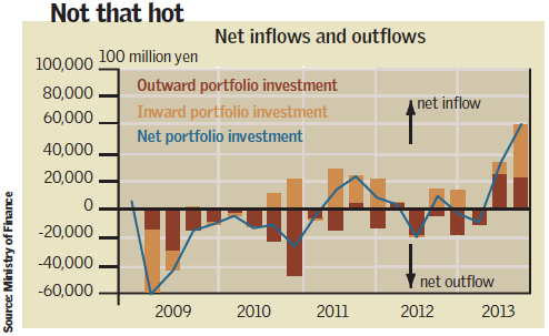 INFLOWS, ACTUALLY By contrast, portfolio outflows from Japan turned to net inflows of some 10 trillion yen in the first half of this year, according to ministry of finance data. Rather than picking up the slack in emerging markets created by US tapering, Japanese portfolio investors appear to have taken fright at the drop in