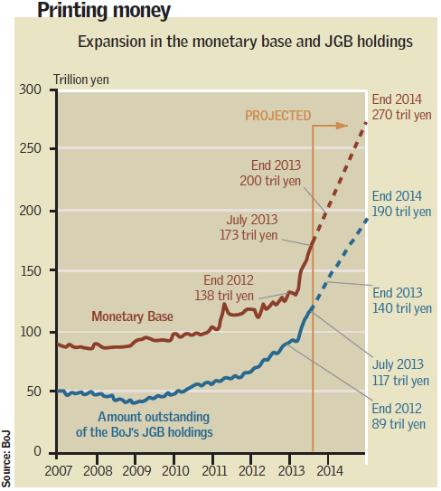 The first two of what Abe (drawing on traditional archery images popular in Japan) calls the “three arrows” of Abenomics are in full flight. The Bank of Japan’s announcement in April that it planned to double the monetary base within two years left even the US Fed looking somewhat lame.