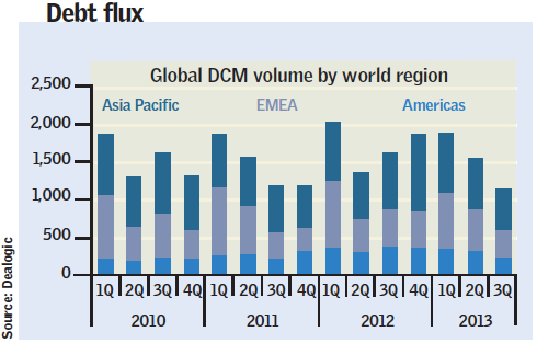 Latin America corporate bond issuance in the current year to September 15, meanwhile, is at a record high, at $68 billion, up 5% year-on-year on 2012 figures, and up 30% on 2011 figures.